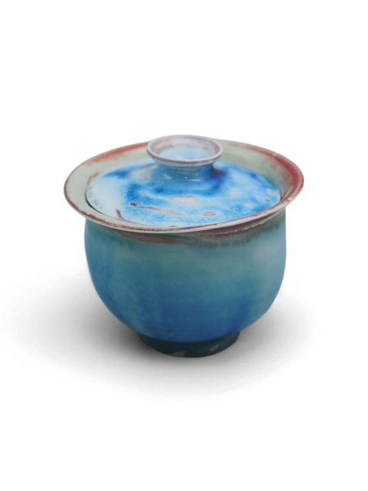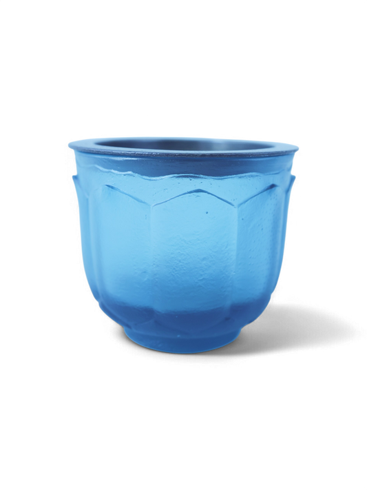 Ancient Elegance: Sea Blue Lotus Glass Bowl with Pewter Lid